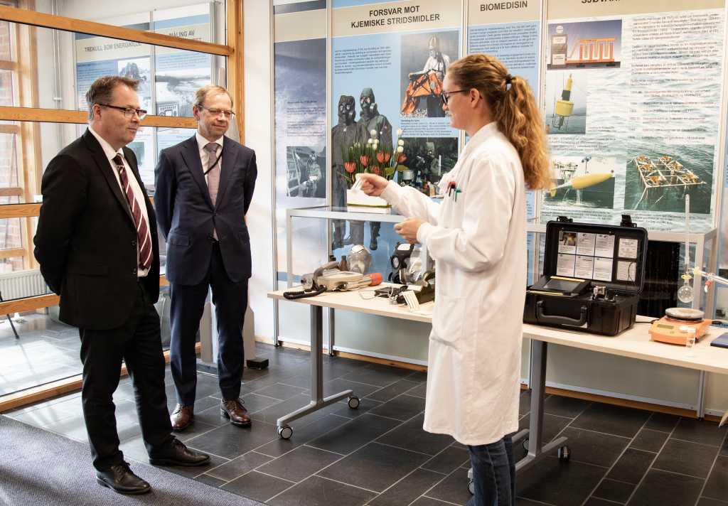 Tønsager fortalte om hva som skjer når laboratoriet mottar en prøve. Forsvarsministeren fikk se de enkle håndholdte detektorene som brukes ute i Forsvaret og ved FFI, men også de veldig avanserte instrumentene som laboratoriet bruker for å bestemme akkurat hva som er i prøven.