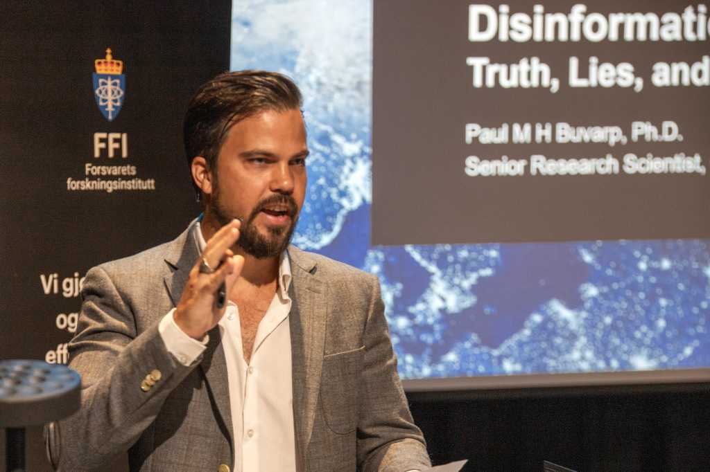 Paul Magnus Hjertvik Buvarp er seniorforsker ved FFI. Han var først i ilden blant ekspertene som var samlet til årets påvirkningskonferanse, som denne gangen gikk av stabelen i Deichmanske bibliotek i Oslo. Konferansen ble arrangert for tredje år på rad, i samarbeid mellom FFI og Forsvarets høgskole.